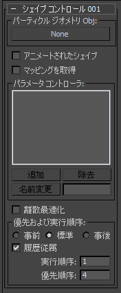 - [シェイプ コントロール](Shape Control)は出力タイプのサブオペレータであるため、パラメータの[優先および実行順序](Priority and Execution Order)領域があります。詳細については、「優先および実行順序」を参照してください。