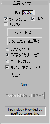 - [保存されたサーフェス](Preserved Surface) [オート メッシュ](Auto mesh)と[保存](Preserve)の両方にチェックマークが付いている場合、または[メッシュ完了後に保存](Mesh It And Preserve)をクリックした場合に、服飾メーカーはスタックの最上部(布地の適用先)でメッシュのスナップショットを取ります。[保存されたサーフェス](Preserved Surface)を選択したときに、このスナップショットがスタック内を渡されます。このようにして、[密度](Density)値を変更してもメッシュの変形が維持されます。スナップショットが作成されると、[パネル](Panel)サブオブジェクト レベルで、パネルの[保存を使用](Use Preserved)チェック ボックスにチェックマークが付きます。 これは、変形を保ちながらパネルを移動できることを意味します。また、スナップショットが作成されると、服飾メーカーにより[保存されたサーフェス](Preserved Surface)オプションが自動的に選択されることにも注意してください。