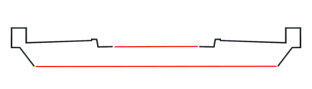 後でスパニング サーフェスと閉結サーフェス オプションを使用してブリッジの上部と下部に道路を作成します。ダイアグラムはこれらを赤で表示します。(また、ブリッジの両端にキャップサーフェスを設定します。)