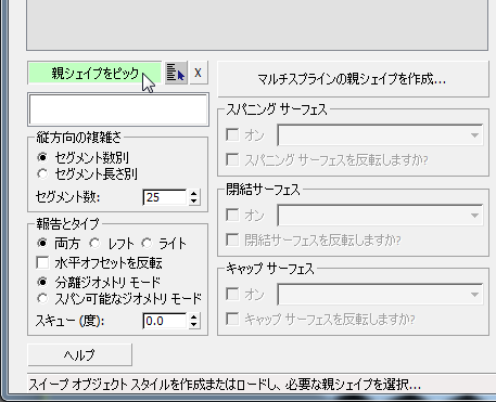 3ds Max によって、スイープ オブジェクトに使用するモードを尋ねるダイアログ ボックスが表示されます。