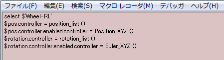 続いて、同様の手順で、左前輪の回転トラックにもリスト コントローラを割り当てます。