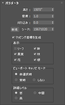 このボタンをクリックするたびに[シード](Seed)の値が変更され、木にランダムな設定が適用されます。