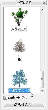 - [お気に入り](Favorite Plants)ロールアウトで、樹木の種類として[一般的なオーク](Generic Oak)を選択します。