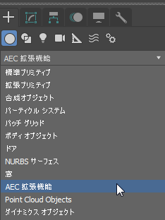 ([ジオメトリ](Geometry))をアクティブにし、ドロップダウン リストから(現時点では「標準プリミティブ」と表示されています)、[AEC 拡張機能](AEC Extended)を選択します。