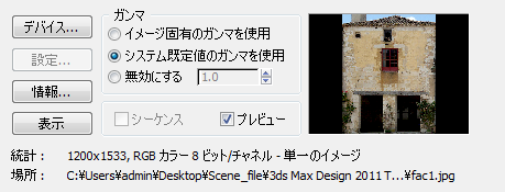 [ファイルを表示](View File)ダイアログ ボックスの左下隅にあるステータス ラインに、イメージの寸法(1200 x 1533 ピクセル)が表示されます。これが、ファサードのアスペクト比になります。
