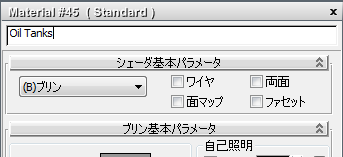 - パラメータ エディタの最上部付近にあるマテリアルの名前フィールドに、マテリアル名として Oil Tanks と入力します。