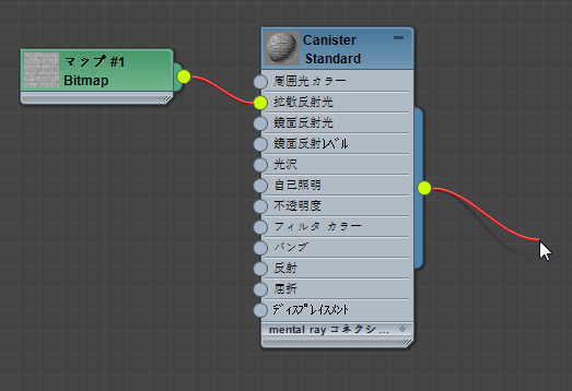 これで、ビットマップをマテリアルにワイヤリングできました。