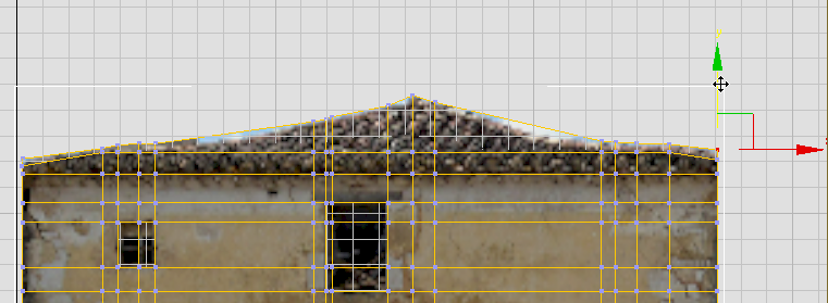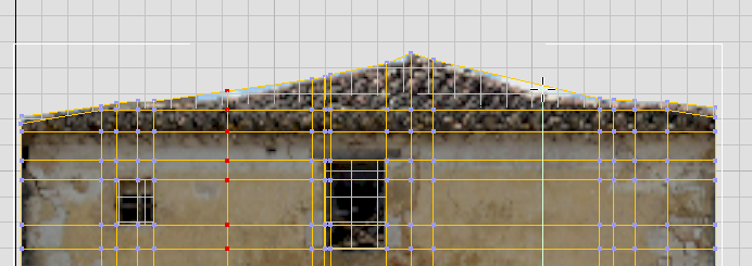 既存の頂点をすべて移動すると、屋根先端の両側に、中世の屋根にへこみができて青空が見えている領域が 2 箇所あることが分かります。