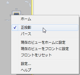 - パース ビューで ViewCube の前面をクリックしてから右クリックして、ポップアップ メニューから[正投影](Orthographic)を選択します。