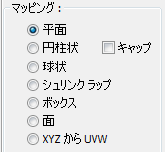 [UVW アンラップ](Unwrap UVW)コントロールのなかに、特定の種類のオブジェクトをマッピングするのに便利なものがいくつかあります。一部は[UVW マップ](UVW Map)オプションと似ています。たとえば、[投影](Projection)ロールアウト