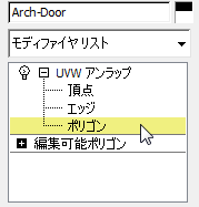 - モディファイヤ スタックの[UVW アンラップ](Unwrap UVW)モディファイヤ階層で、[ポリゴン](Polygon)をクリックして[ポリゴン](Polygon)サブオブジェクト レベルに移動します。