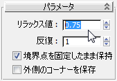 この場合、布地のパラメータを微調整するのではなく、[リラックス](Relax)モディファイヤを適用します。
