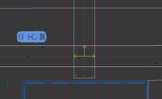 この場合、横断歩道/通路の交差は横断歩道フローの終端の近くにあるため、交差点には 3 つの矢印のみが表示されます。