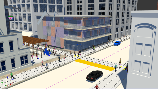 計算が完了すると、歩道、横断歩道、通路に、それぞれの道に沿って歩く人々が配置されます。