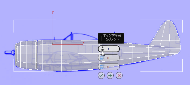 3ds Max によって、コックピット前方とエンジン カウル後方の間に、垂直方向のエッジのセットが 1 つ追加されます。