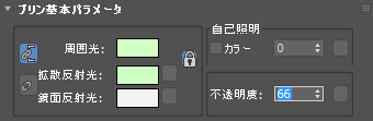 注: 既定では[拡散反射光](Diffuse)と[周囲光](Ambient)の値はロックされているので、拡散反射光カラーが同じ暗い色に変更されます。
