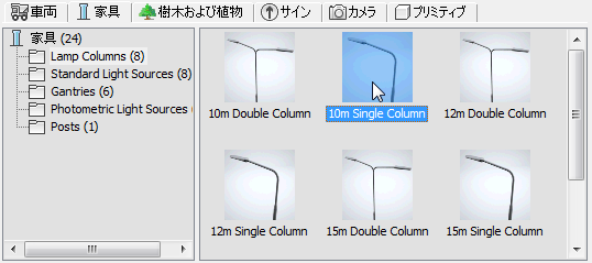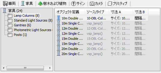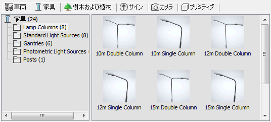 このレッスンでは、道路に公共設備を追加します。これらのオブジェクトは、配置済みオブジェクトの Civil View カテゴリにあります。