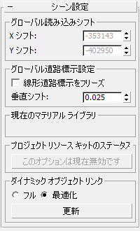 下のパネルで、Civil View エクスプローラによって[シーン設定](Scene Settings)ロールアウトが開きます。