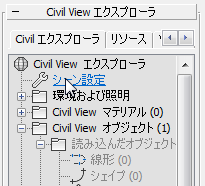 上のパネル([Civil View エクスプロータ](Civil View Explorer)ロールアウト)で、[シーン設定](Scene Settings)エントリをクリックします。