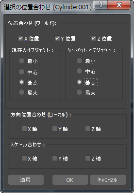- [選択の位置合わせ (Cylinder01)](Align Selection (Cylinder01))ダイアログ ボックス