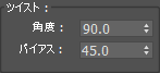 [ツイスト](Twist)領域で、[角度](Angle)を 90.0、[バイアス](Bias)を 45.0 に設定します。