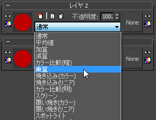 - [レイヤ 2](Layer 2)ロールアウトでブレンド モードドロップダウン リストを開き、[乗算](Multiply)を選択します。