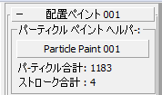 - Placement Paint のロールアウトで、[パーティクル ペイント ヘルパー](Particle Paint Helper)ボタンをクリックします(最初は「None」と表示されています)。