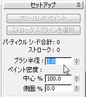 - [セットアップ](Setup)ロールアウトで[ブラシ半径](Brush Radius)の値を 2.0 に変更します。