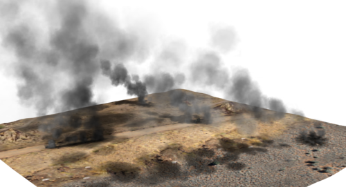 これで煙自体は完成しました。残りの演習では、燃えているジープから残り火を生成します。