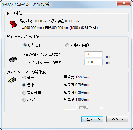 をクリックします。次のような、ツールパス シミュレーション - ブロック定義 ダイアログが表示されます。