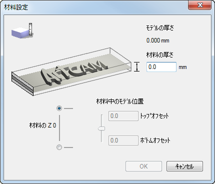 - 加工深さ セクションの 開始高さ に 0 を入力して、材料のサーフェスからの距離を指定します。この位置から加工を開始します。