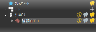 - プロジェクト ツリーの 輪郭加工 1 の横に表示されている