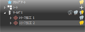 ツールパスが算出され、ArtCAM のプロジェクト ツリーの ツールパス 以下に、レリーフ加工 2 が表示されます。