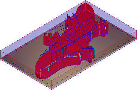 ツールパスが赤、早送り移動が青、プランジ移動が水色で表示されます。