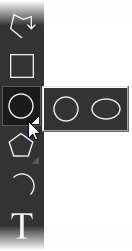 ツールセットには、同じような機能のボタンがまとめられています。ボタンの右下の が、ツールセットがあることを示します。カーソルをツールセットのボタンの上に配置して、ボタンをクリックしたままの状態にすると、すべてのボタンが表示されます。
