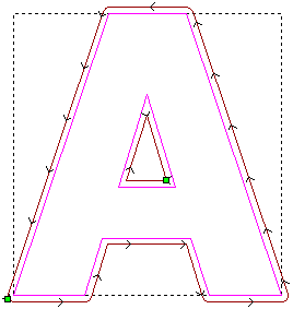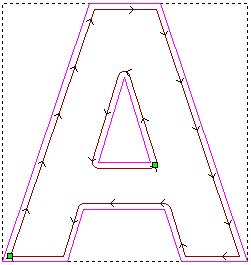 - 仕上げ代 - 選択したベクトルの境界と、工具との間の距離を入力します。材料を残しておく場合は正の値、材料を余分に除去する場合は負の値を入力します。