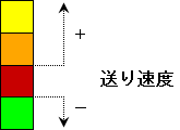 - 黄 - 送り速度が、元の速度の 2 倍以上速くなったことを示します。