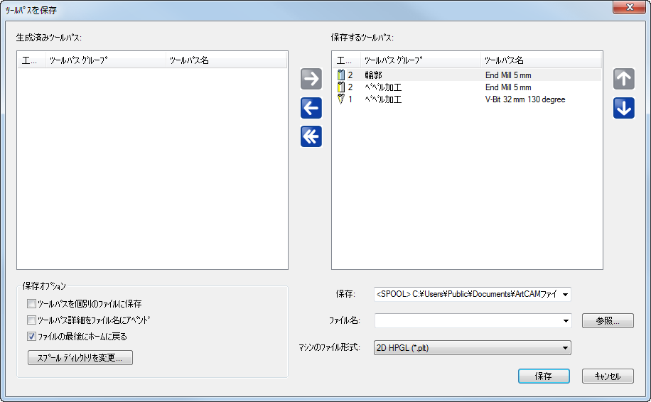 をクリックして、ツールパスを保存 ダイアログを表示します。