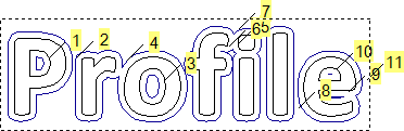 に、次に選択する輪郭パスの番号が表示されます。輪郭パスの選択にともない、パネルの 加工順 フィールドにその順番が表示されます。