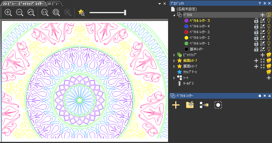 ベクトル アートワークの色は、ベクトル レイヤーに割り当てられている色によって制御されています。デフォルトで、新規ベクトル レイヤーには黒が割り当てられています。各レイヤーに異なる色を割り当てると、アートワークが描画されているベクトル レイヤーと、そのレイヤーの用途の識別がしやすくなります。