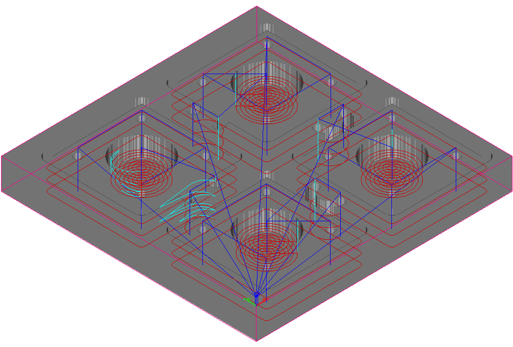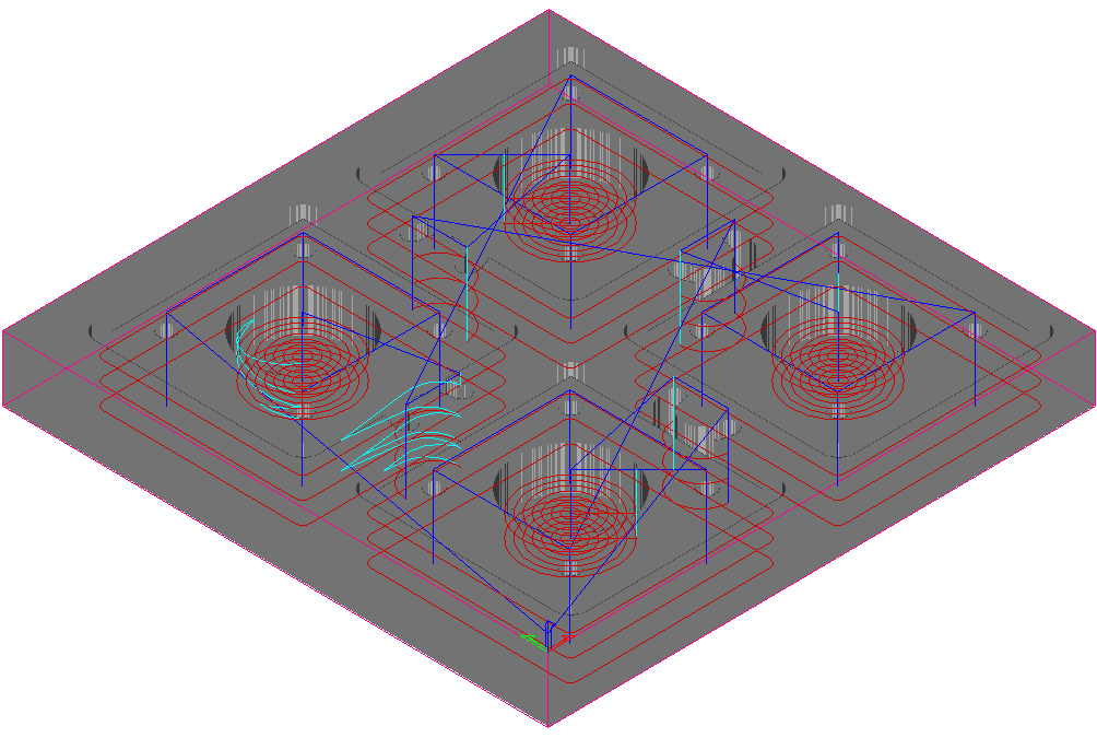 生成した複数のツールパスを個別に加工すると、工具はツールパスごとにホームへ復帰しなければなりません。これらのツールパスを 1 つにまとめてこの手間を省くことができます。