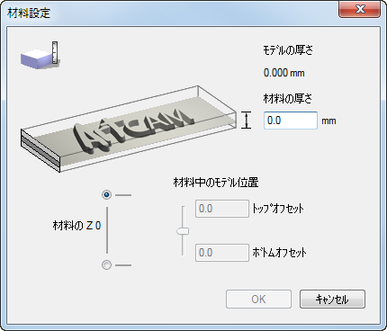 - 材料の高さ Z 0 のオプションを選択して、材料ブロックの Z 0 位置を指定します。