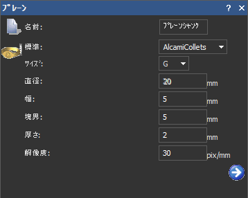 - 厚さ に、シャンクの内径から外径までの間の距離を入力します。