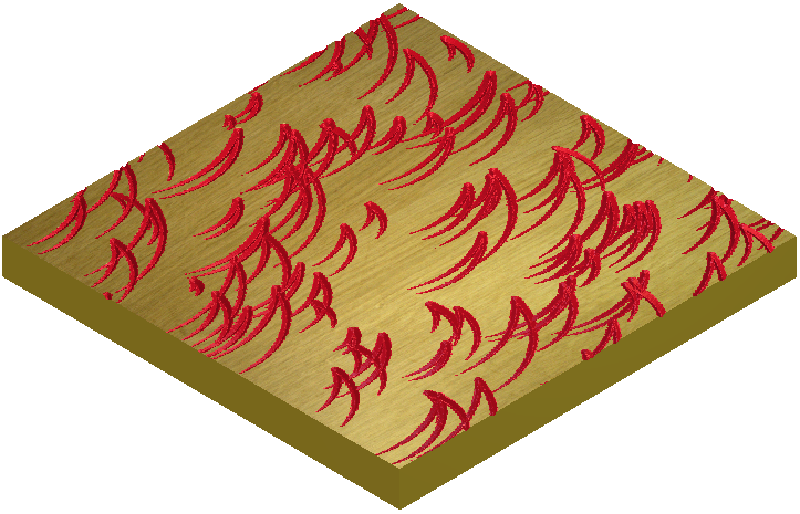 前述の例での開いたベクトルと、V-Bit 32mm 100 degree (V 型テーパー ビット 32mm 110 度) 工具を使用すると、次のような表面模様が作成されます。