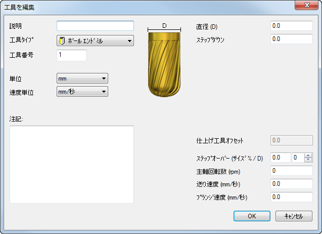 - [ 注記 ] に、工具に関するコメントを入力します。