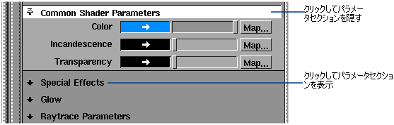 キー(Mac)を押しながらクリックすると、Color Editor が開き、シェーダの Color、Specular、Incandescence の各設定を編集することができます(背景を