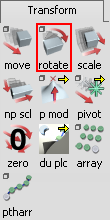 Transform > Rotateツールを使用して、ピボットポイントを中心としてオブジェクトを回転させます。使用するマウスのボタンで回転軸が決定します。