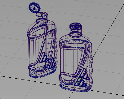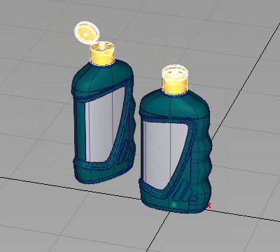 ファイルが開きます。シーンには2つのシャワー ジェル ボトルが異なる位置にあります。1つはキャップが開き、もう1つは閉じています。