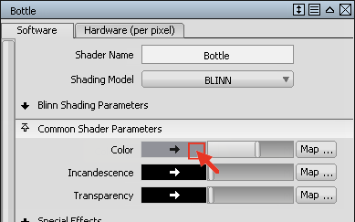 ボトルはBlinnシェーディングモデルを持つデフォルトのシェーダを使用しています。Alias には次の 4 種類のシェーディング モデルがあります。