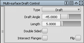Multi-surface Draft Control ウィンドウで、設定を Draft Angle を -3 度、Length を 2 に変更し、Update をクリックします。